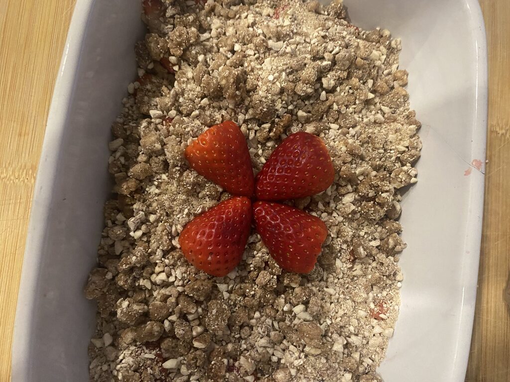 Deze crumble is geschikt voor veel variaties: je kunt de aardbeien vervangen door kersen, appels, peren of vijgen, afhankelijk van je smaak of het seizoen.