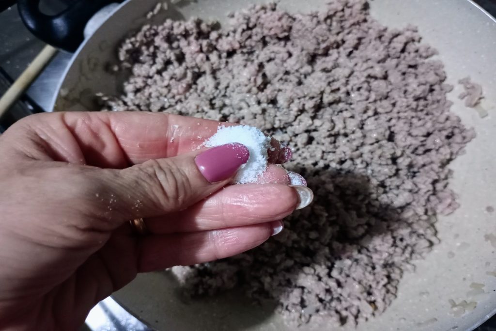• Voeg het gehakt toe en laat 5 minuten bakken, vaak roerend.