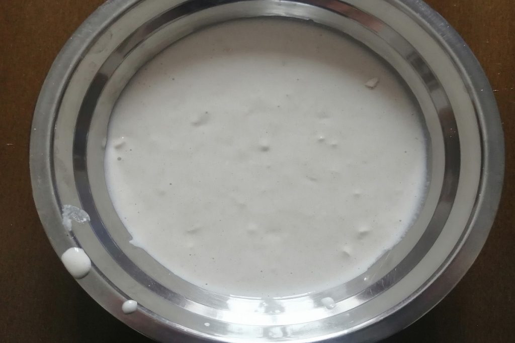 Voeg in een andere kom het water, de melk en de EVO olie samen.