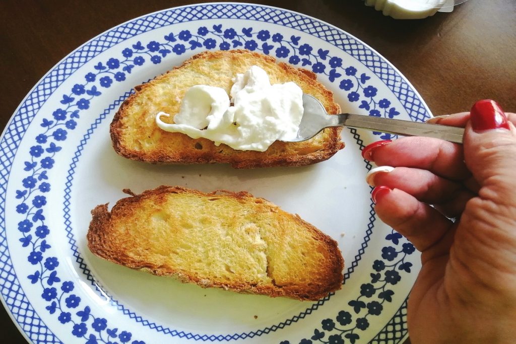 • Rooster het brood op een grill of in de oven, zonder het te veel te verbranden, de plakken moeten goudbruin zijn.