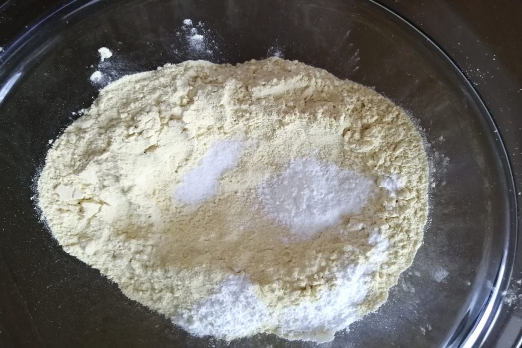 In een kom mengen we het kikkererwtenmeel, de instant gist en het zout.