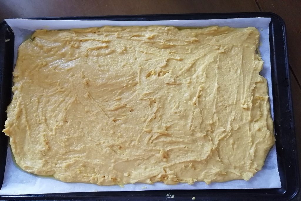 Giet het deeg erbovenop.