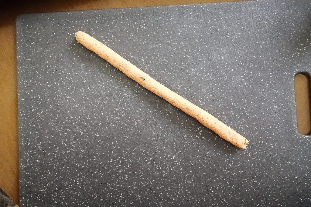 Neem een stukje deeg en rol er een stokje van; ga zo door tot het deeg op is.