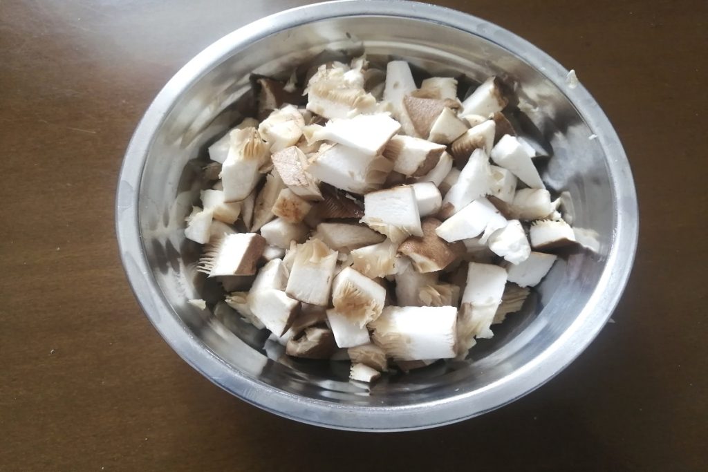 • Maak de paddenstoelen schoon en snijd ze in kleine stukjes.