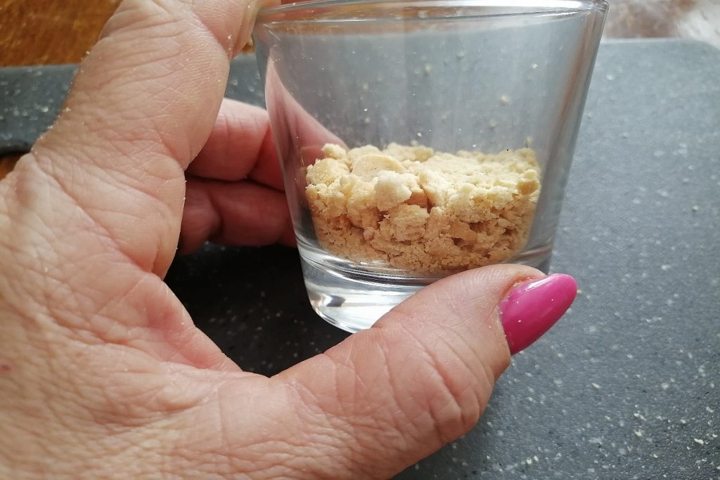 Zodra alle ingrediënten zijn voorbereid, kunnen we onze glaasjes samenstellen.