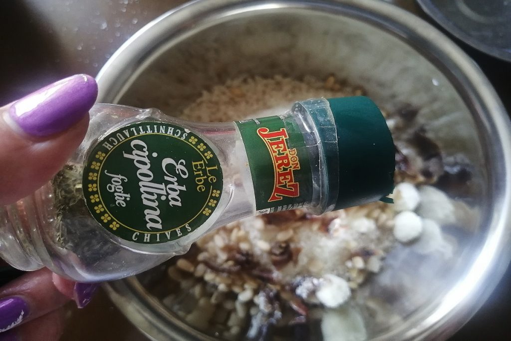 Bereid de vulling door het broodkruim te mengen met pecorino, pijnboompitten en in stukjes gesneden ansjovis.
