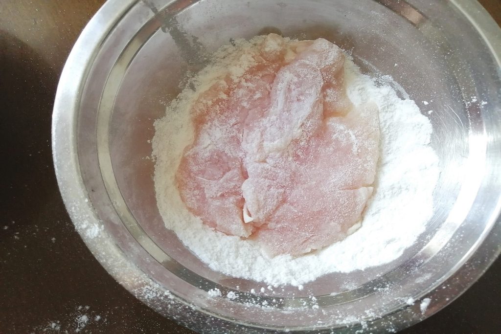 Nadat de saus is bereid, gaan we verder met de bereiding van de kipfilet.