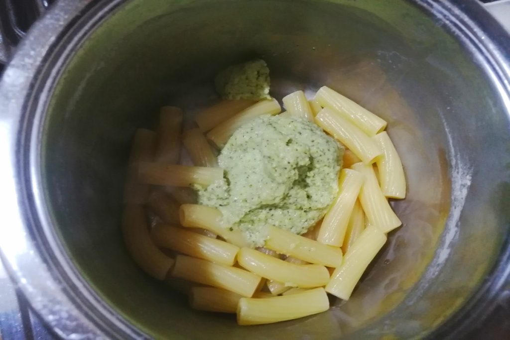 • Giet de pasta af en voeg de benodigde hoeveelheid courgettesaus toe, voeg een beetje kookwater toe om te mengen.
