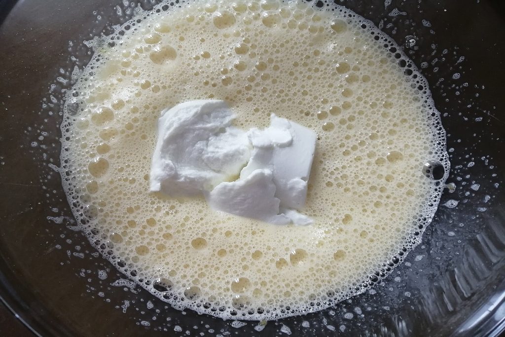 Voeg ook de yoghurt toe en mix verder met de mixer.