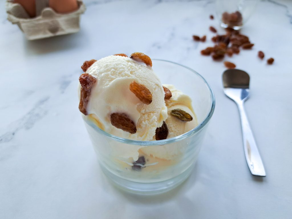 Om het perfecte malaga-ijs te maken, beginnen we met de basis van het klassieke roomijs, waaraan rum en rozijnen worden toegevoegd. Hier zijn de stappen om het thuis te bereiden.