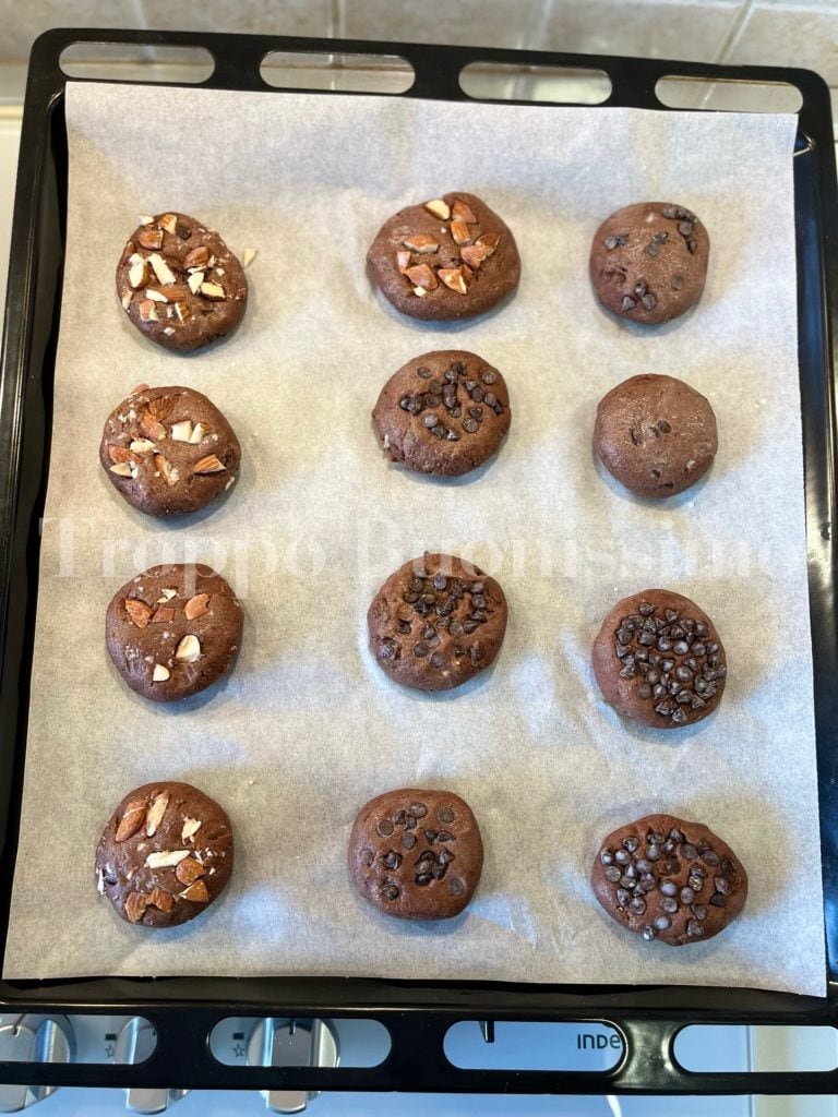 Neem telkens een lepel deeg en vorm balletjes, druk ze lichtjes plat en leg ze op een met bakpapier beklede bakplaat, met wat afstand ertussen.