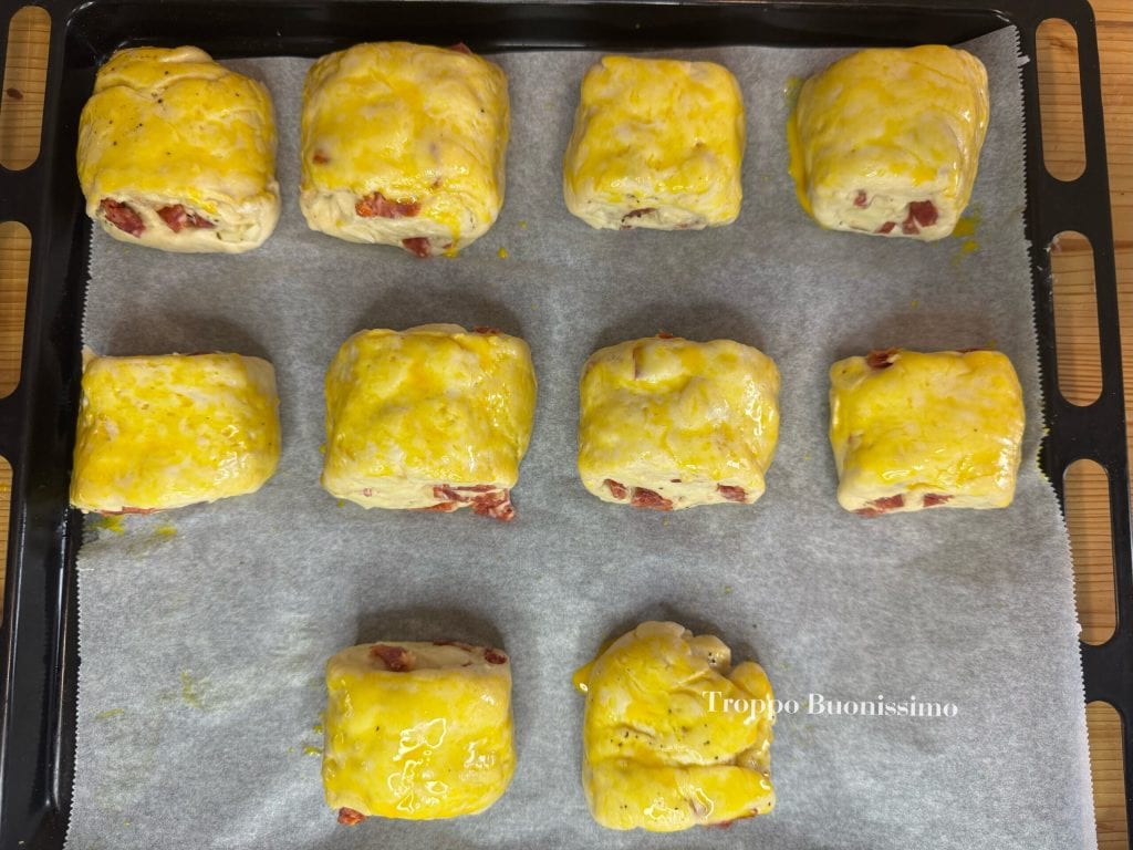 In dit recept heb ik salami en provolone in blokjes gebruikt, voor een smakelijk maar uitgebalanceerd resultaat. Je kunt de vulling echter naar eigen smaak aanpassen: