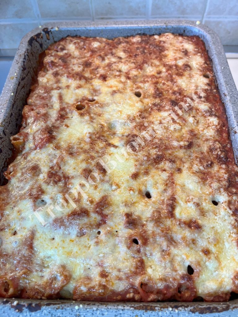 De echte hoofdrolspelers van deze verrukking zijn de rigatoni, verticaal gerangschikt om een ongekende visuele en smaakervaring te creëren. Elke rigatone is een klein doosje van verrassingen, gevuld met een rijke ragù, omhuld met zachte mozzarella en versierd met een beetje grana padano.