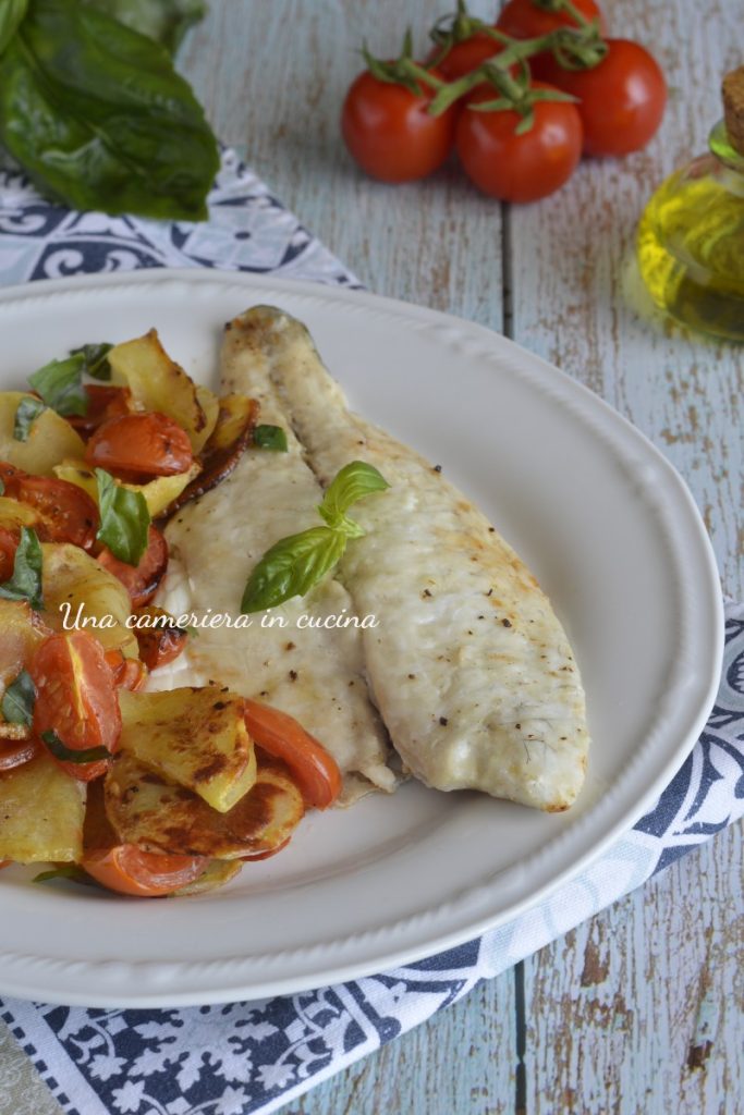 Het doradefilet met cherrytomaatjes en aardappelen is een eenvoudig, smakelijk en geurend visgerecht. Voor het recept heb ik vers doradefilet gebruikt, verrijkt met cherrytomaatjes, dun gesneden aardappelen en basilicum die geur aan het gerecht geven, alles in de oven gebakken. Ze zijn in enkele minuten klaar als je de al schoongemaakte verse filets gebruikt, anders kun je ze vervangen door een hele dorade en deze fileren, wat enkele minuten meer voorbereiding vereist maar minder kost.