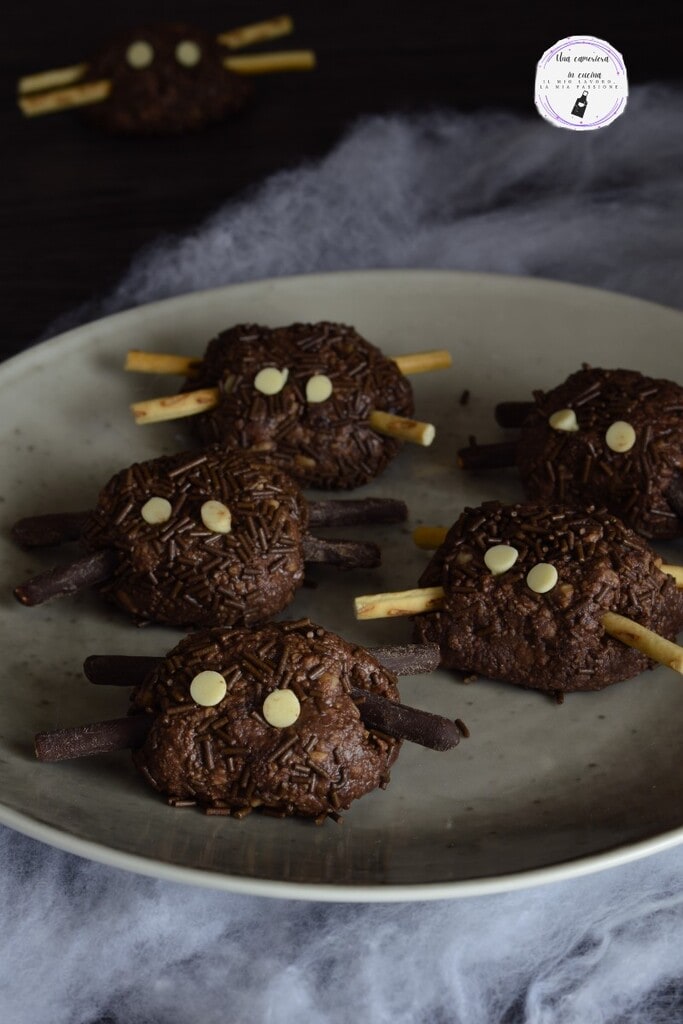 De Halloween spinnetjes zijn kleine en heerlijke chocoladesnoepjes met koekjes en hazelnootstukjes. Perfect om te serveren als nagerecht voor het Halloween feest. Ze zijn gemakkelijk en leuk om te maken, zoals de Halloween chocoladepuddinkjes, romig en met gekleurde snoepjes in de vorm van een worm, of de krokante heksenvingers van zanddeeg, amandelen en jam. Wat ga je als eerste proeven?