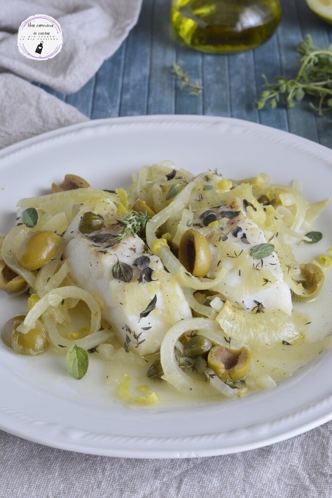 De kabeljauw met olijven en kappertjes is een eenvoudig en smaakvol visgerecht. Het is in een paar minuten klaar en perfect op elk moment. Een mals filet van verse kabeljauw, in de oven gebakken met een saus op basis van ui, groene olijven (of zwarte als je dat liever hebt), ingelegde kappertjes, op smaak gebracht met verse tijm, oregano en citroenschil. Heerlijk geserveerd zoals ze zijn, met zachte polenta of gegrild, of met een bijgerecht van gekookte aardappelen als salade.