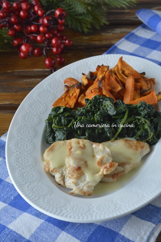 De kalkoenfilet met gravy saus zoete aardappel en spinazie is een smakelijk en rijk hoofdgerecht, bedacht voor wie Thanksgiving wil vieren met het traditionele gerecht op basis van kalkoen, maar zonder veel tijd in de keuken door te brengen, op een eenvoudige en snelle manier. Voor het recept dacht ik eraan om plakjes kalkoenfilet in de pan te koken, vergezeld van een bijgerecht van spinazie en de onmisbare zoete aardappel (of bataat), dit keer met oranje vruchtvlees, gekookt in de airfryer. Dit alles geserveerd met de typische gravy saus op basis van bloem, boter en vlees- of groentebouillon, eerder klaargemaakt of, als je de ingrediënten en tijd niet hebt zoals ik, kun je kant-en-klare bouillonblokjes gebruiken.