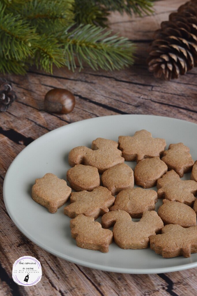 De kastanje- en speculaaskoekjes zijn geurige en heerlijke koekjes in perfecte herfst- of winterstijl. Klassiek zanddeeg bereid met een selectie van twee soorten meel, 00 en kastanjemeel, waaraan ik vervolgens de specerijen en sinaasappelschil heb toegevoegd. Ze zijn perfect voor zowel ontbijt als tussendoortje. Bovendien zijn ze ook ideaal om cadeau te geven als kerstgeschenk.