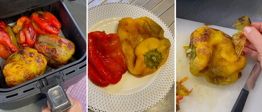 Ik heb de paprika’s heel snel in een airfryer gekookt; het duurt slechts 20 minuten, maar als je wilt, bak ze in een voorverwarmde oven gedurende 35-40 minuten op 200 graden.