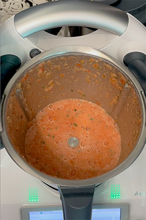 Ik heb het met de Bimby bereid, maar je kunt het natuurlijk ook met een gewone mixer maken. Onderaan het recept schrijf ik de werkwijze met beide apparaten.