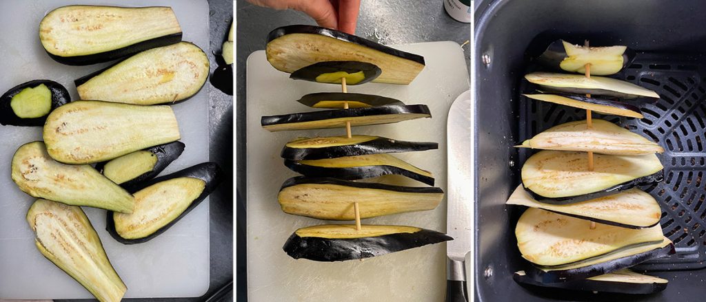 Hoe veel aubergines grillen in een airfryer voor het maken van aubergine parmigiana? De oplossing is heel eenvoudig: met houten spiesjes!