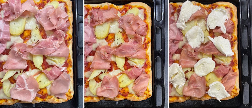 Hoe de Pizza met porchetta, aardappelen en buffelmozzarella bereiden