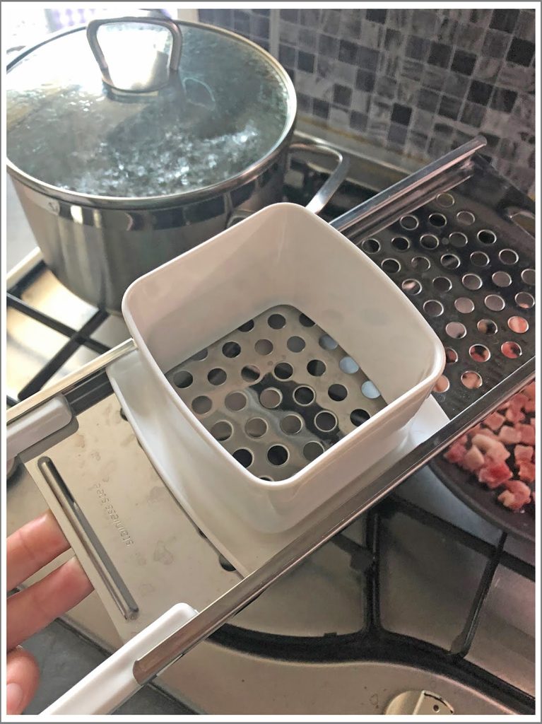 Om ze te maken heb je een spätzlehobel nodig, een speciaal gereedschap met gaten om deegdruppels in kokend water te laten vallen.
