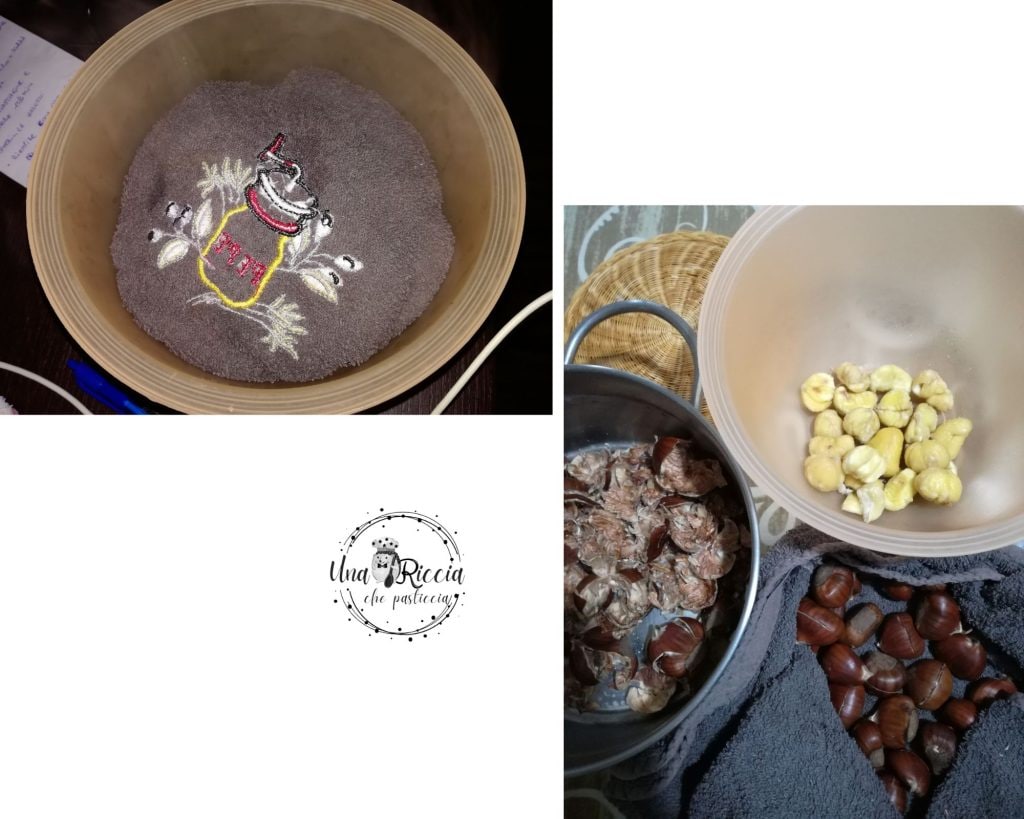Dit jaar heb ik het geluk dat ik ze in het bos vlakbij mijn huis kan verzamelen, dus ik heb er veel beschikbaar en daarom heb ik besloten om dat kleine gebaar van mijn moeder terug te geven door ze zelf voor haar en vooral voor mijn vader te maken. Helaas scheiden een paar kilometer ons van elkaar, dus besloot ik kastanjes met brandy te maken, zodat ik ze kan bewaren tot ik hen zie tijdens de kerstvakantie. Ik zal voor hen een mooie mand maken met kastanjes, een potje Giuggiole onder grappa , een pot gepocheerde pruimen en een pot aubergine- en gembercompote ideaal met kaas. Een fantastisch cadeau-idee waarvan ik zeker weet dat ze er dol op zullen zijn.