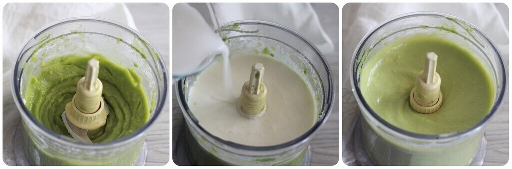 • Voeg de room en een deel van de melk toe aan de verkregen avocado-crème, maal nog een paar seconden om de ingrediënten te mengen. Doe alles in de ijsmachine inclusief de resterende kokosmelk, stel de timer in op dertig minuten, het duurt echt heel kort. Je kunt het ijs in de vriezer bewaren of direct consumeren.