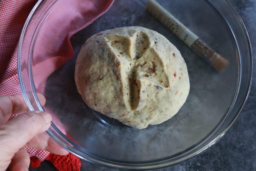Ik leg het in een kom en laat het rijzen tot het verdubbeld is.