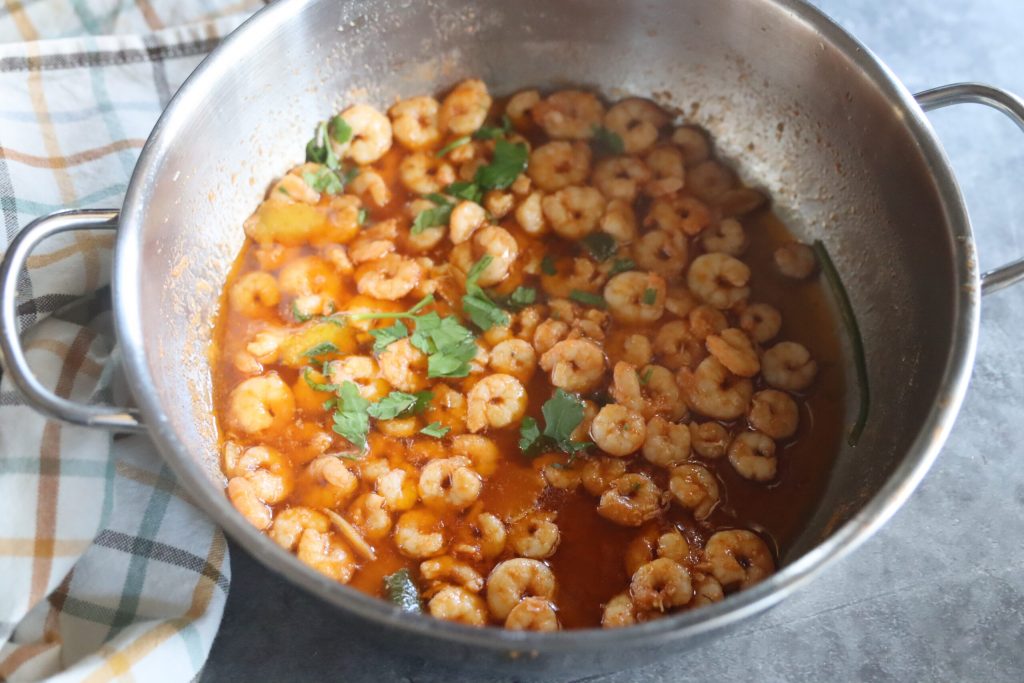 Ik kook de busiate volgens de aangegeven tijd op de verpakking en laat ze een paar minuten minder garen om ze daarna te laten binden met de garnalensaus.