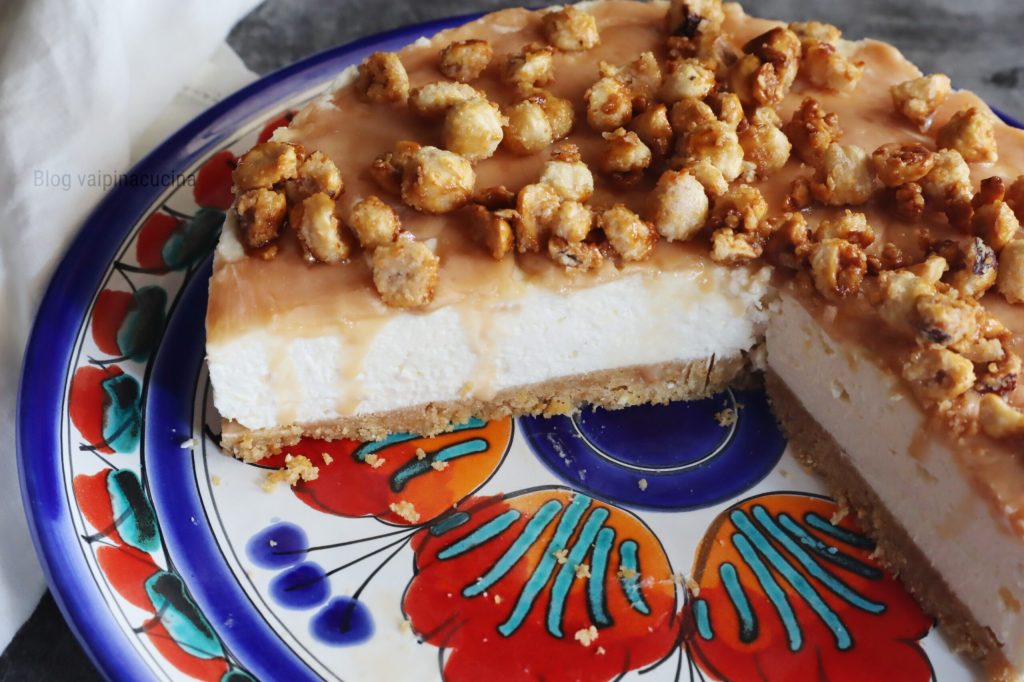 Cheesecake met gezouten karamel, een uniek en heerlijk dessert om snel en zonder koken te bereiden, wat niet niks is. Zonder koken, als je de gezouten karamel niet zelf maakt, maar koopt. Het is zeker niet moeilijk om gezouten karamel te maken; je kunt het zelfs een dag van tevoren doen: het blijft meerdere dagen goed in de koelkast, als je dat kunt.