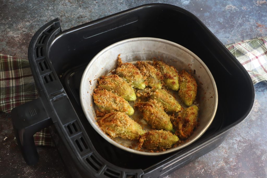Kun je de courgettebloemen, kaas en gekookte ham op een andere manier koken dan in de heteluchtfriteuse?