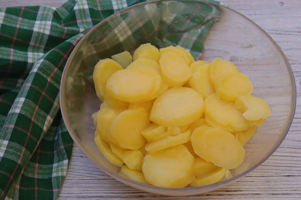 Benodigde ingrediënten voor het maken van Duitse aardappelsalade