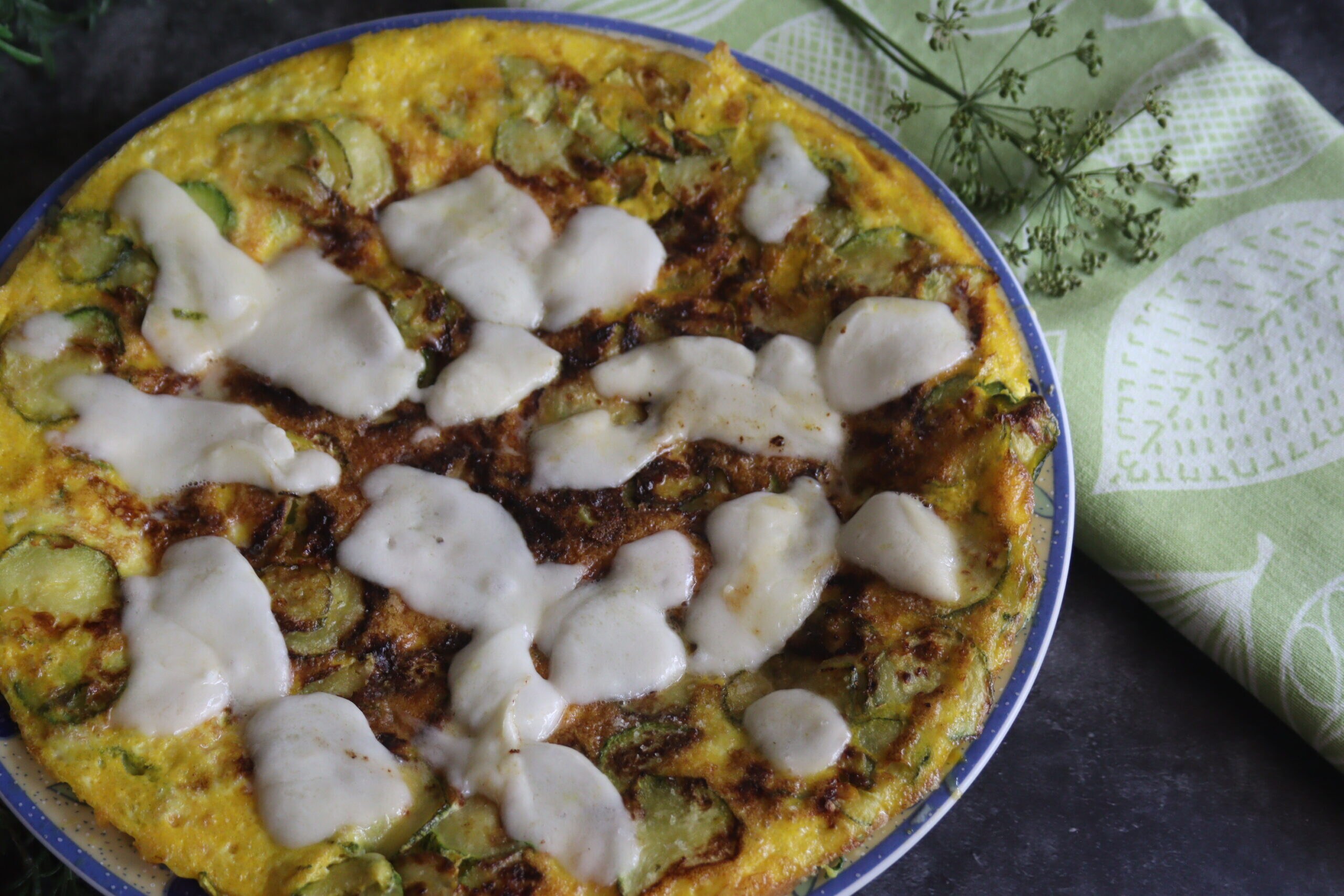 Frittata met courgette en mozzarella: een zomers hoofdgerecht geliefd bij jong en oud, eenvoudig te bereiden en met elke groente altijd perfect. De frittata roept voor mij een zoete herinnering op, een herinnering aan thuis en familie, een herinnering aan mijn moeder die ons vaak frittata maakte met wat de tuin op dat moment gaf. Dus courgettes of uien, aardappelen of aubergines, wat kan ik zeggen, ze hadden een speciale smaak en voor ons kinderen was het een feest.