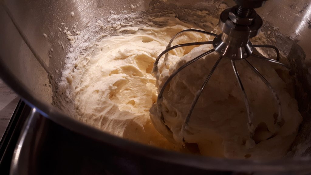 • Voeg de eieren één voor één toe, en voeg de volgende pas toe als het eerste ei volledig is gemengd.
