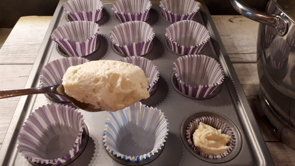• Bereid de papieren bakjes in de muffinvorm voor en vul ze driekwart vol met het deeg van de gekruide paddenstoelen met citrus.
