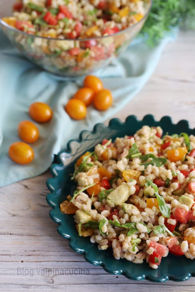 En hier is het, klaar om te worden genoten als een hoofdgerecht of als een eerste gang, de gepelde gerst met tonijn en avocado.