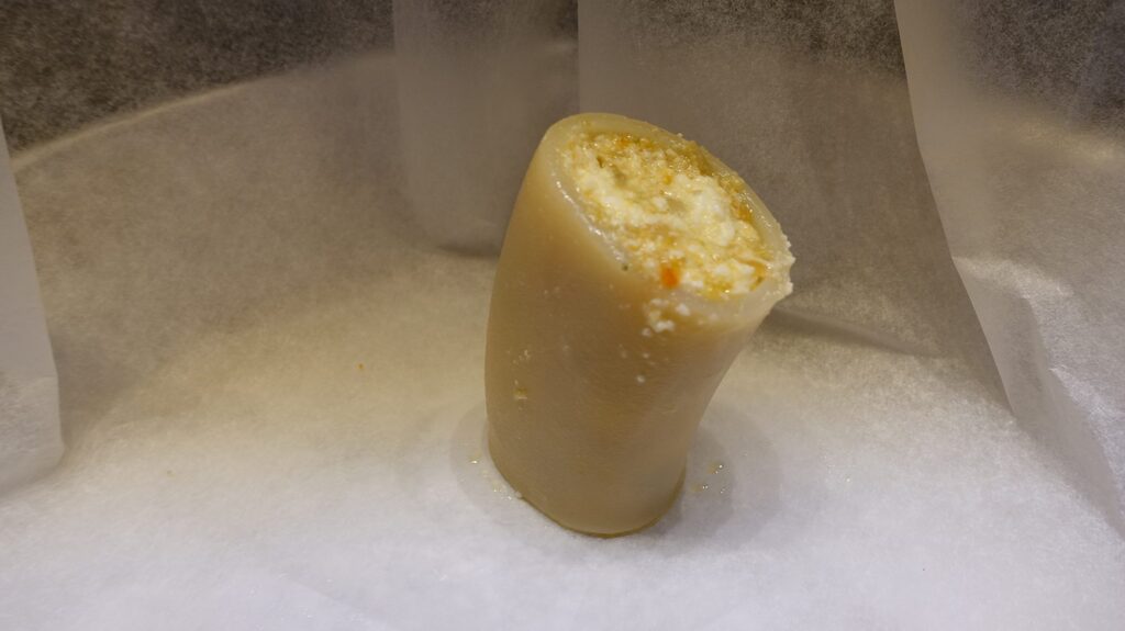 Hier zijn de gevulde paccheri met ricotta en groenten klaar.