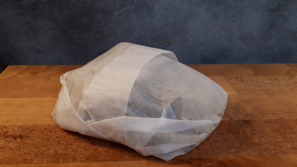 Laat het deeg een half uur in de koelkast rusten, gewikkeld in folie of bakpapier