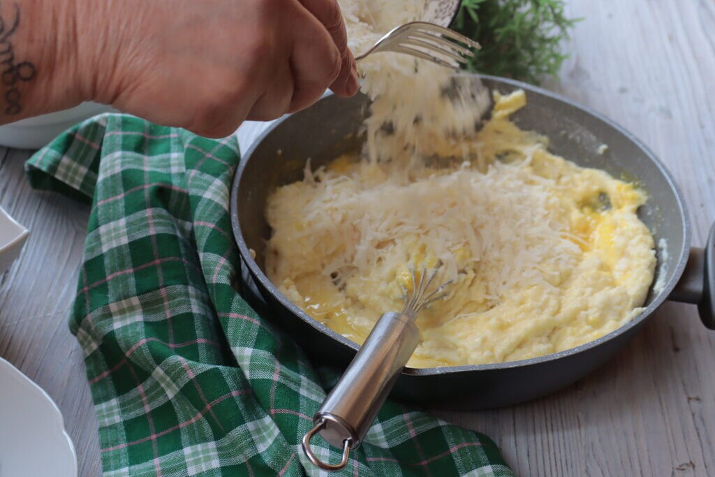 Grieskoekje met groenten en meer precies de cichorei of beter gezegd de buitenste bladeren van de puntarelle, die in het centrum van het zuiden worden gebruikt voor salades. Makkelijk en simpel te maken en vervolgens in een paar minuten in een airfryer gebakken, het ideale grieskoekje voor een snel en smakelijk tweede gerecht. Om de buitenste bladeren niet weg te gooien, die de puntarelle omringen, koken we ze zelfs zonder ze vooraf te koken omdat ze zo zacht zijn.