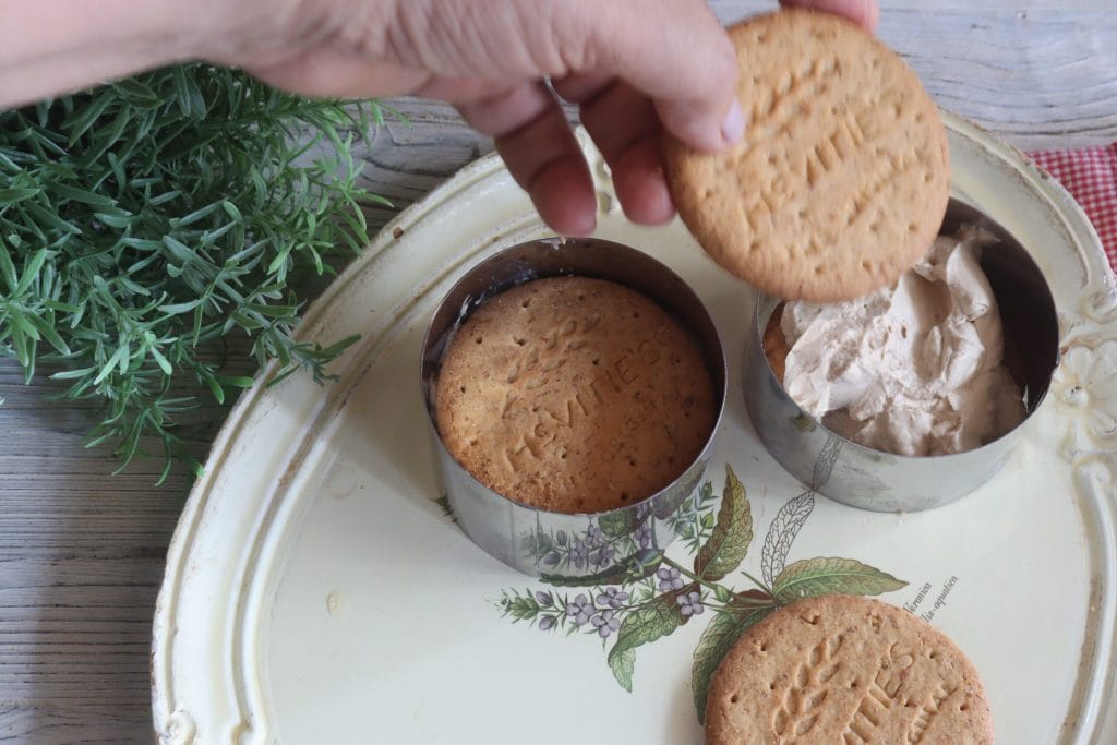 IJssandwich met koffie zonder ijsmachine, iets lekkers en fris dat je zelf met grote voldoening en snelheid kunt maken. Ja, zeker, want het bereiden van deze ijssandwich is echt heel snel. Je hebt een elektrische mixer met kom nodig en kookringen van 10 cm, precies de diameter van mijn koekjes. Uiteraard kunnen jullie de ringen gebruiken die je hebt, maar vergeet niet koekjes van dezelfde diameter te kopen.