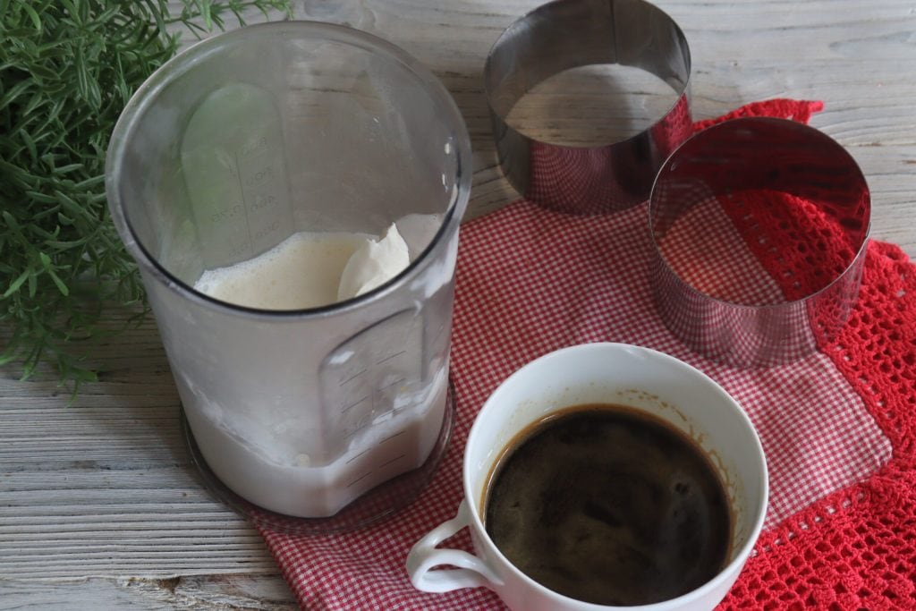 Maak alvast de kopjes sterke koffie en laat deze afkoelen, zet het daarna in de koelkast zodat het lekker koud is.