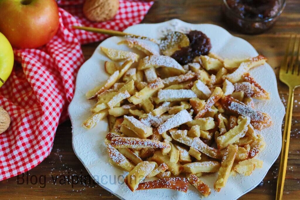 Kaiserschmarrn zoete omelet, een naam die moeilijk uit te spreken is, maar daarentegen een fantastisch gerecht, vooral om de dag te beginnen met een rijk ontbijt. De oorsprong is Oostenrijks, maar we kunnen het ook vinden in Beieren en in Trentino-Alto Adige. Letterlijk betekent Kaiser keizer en Schmarr warboel, dus eenvoudigweg vertaald als keizerlijke omelet. In Oostenrijk is het het meest voorkomende en bekende dessert en dat is ook zo in Trentino-Alto Adige.