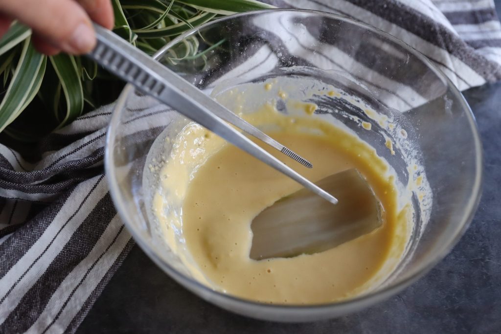 Na de tijd laat ik de stelen uitlekken en maak ondertussen het beslag klaar.