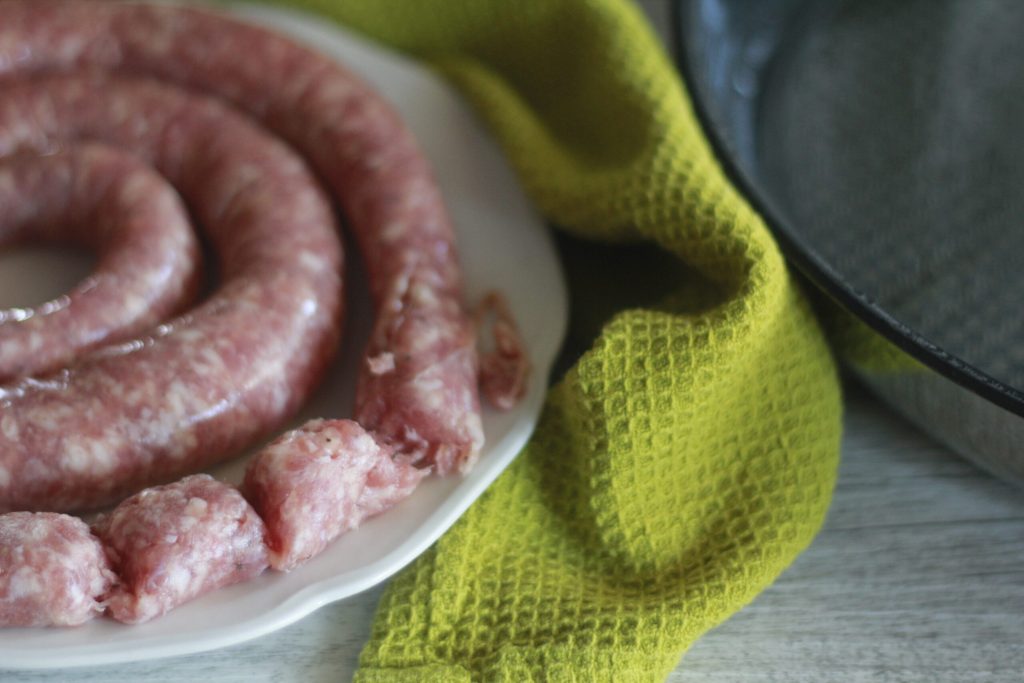 Ik heb de darm van de luganega verwijderd en in stukjes gesneden om er kleine balletjes van te maken.