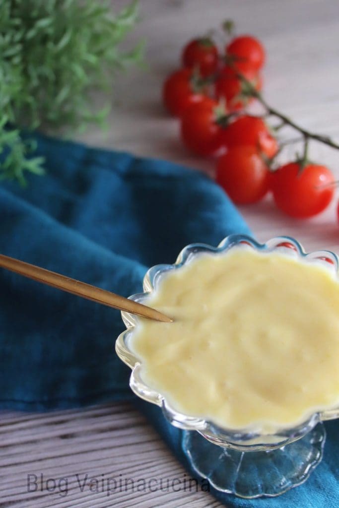 Mayonaise zonder eieren, dus we zouden het zelfs geen mayonaise kunnen noemen, maar het zou een smeerbare saus zijn en het vervangt de dressing van olie met azijn en citroen. Het hoeft niet gekookt te worden, maar alles wordt koud bereid, ideaal om tomaten, aardappelen in salade of Russische salade aan te kleden. Ook gewoon zo, een laagje mayonaise zonder eieren op volkorenbrood met spek. We hebben niet altijd verse eieren beschikbaar om rauw te consumeren en misschien wordt het niet toevoegen ervan een supersnelle manier om mayonaise te maken.