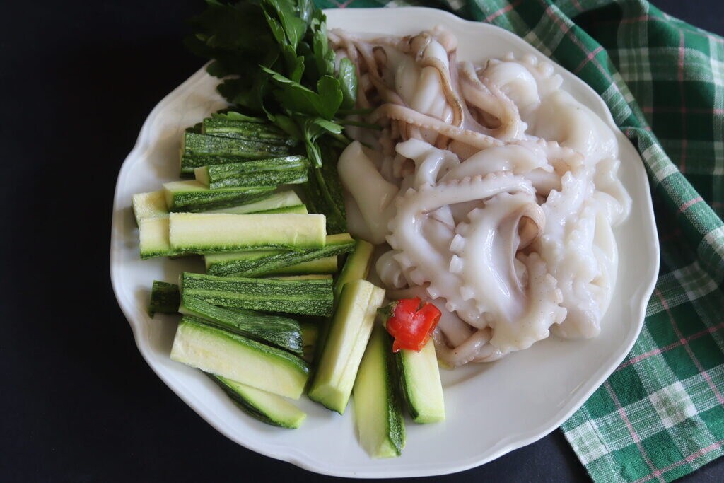 Stappen om moscardini en courgettes te bereiden