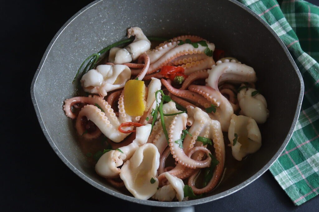 De kooktijden voor weekdieren veranderen natuurlijk afhankelijk van het gewicht en het soort. Bijvoorbeeld, voor octopussen moet je 1 uur per kg gewicht rekenen. Voor sepia’s zijn 20 minuten genoeg, voor inktvissen wel 40 minuten terwijl moscardini malser zijn en 20 minuten genoeg zijn. Toch blijft, naast het hebben van richtlijnen, de smaaktest altijd de beste methode.