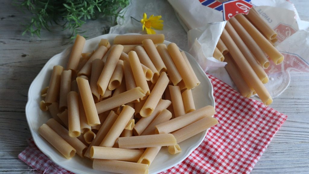 Napolitaanse kaarsen, guanciale en olijven die, samen geroosterd, de pasta een extra boost geven. Het is al bekend dat voorgerechten het hoogtepunt van elk menu zijn, het meest smakelijke deel, althans voor mij. Pasta wordt bijna overal ter wereld bereid, maar in geen enkel ander land zoals in Italië is er zo’n grote variëteit. De Napolitaanse kaarsen zijn slechts een voorbeeld. De productie van dit type pasta, de Napolitaanse kaarsen, vindt plaats in Gragnano, in de provincie Napels, en hier, dankzij de gematigde luchtvochtigheid, wordt een langzame droging verkregen. Voordat ze worden gekookt, worden de kaarsen met de hand gebroken en bereid met sappige sauzen. Vandaag wilde ik ze echter bereiden met een eenvoudige saus en dan met geroosterde guanciale en olijven.